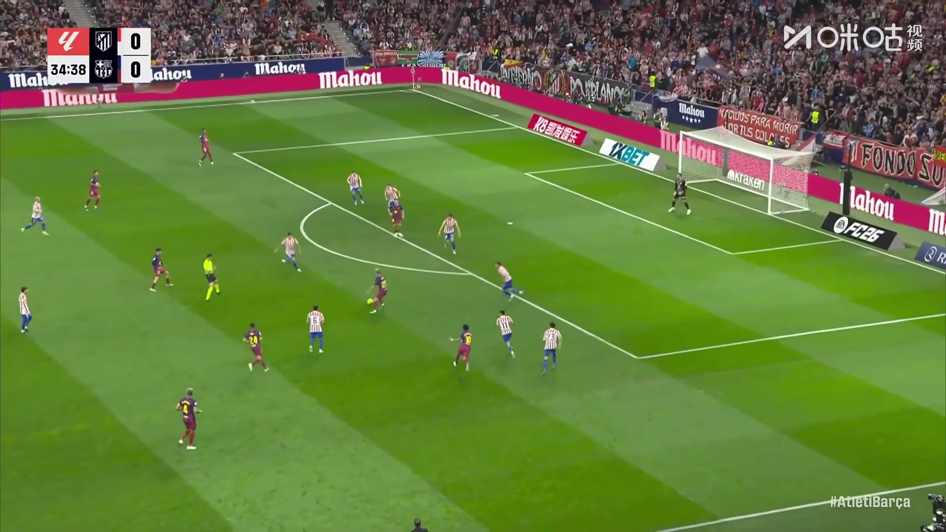 默契传跑!费尔明站桩做球,亚马尔推射中柱