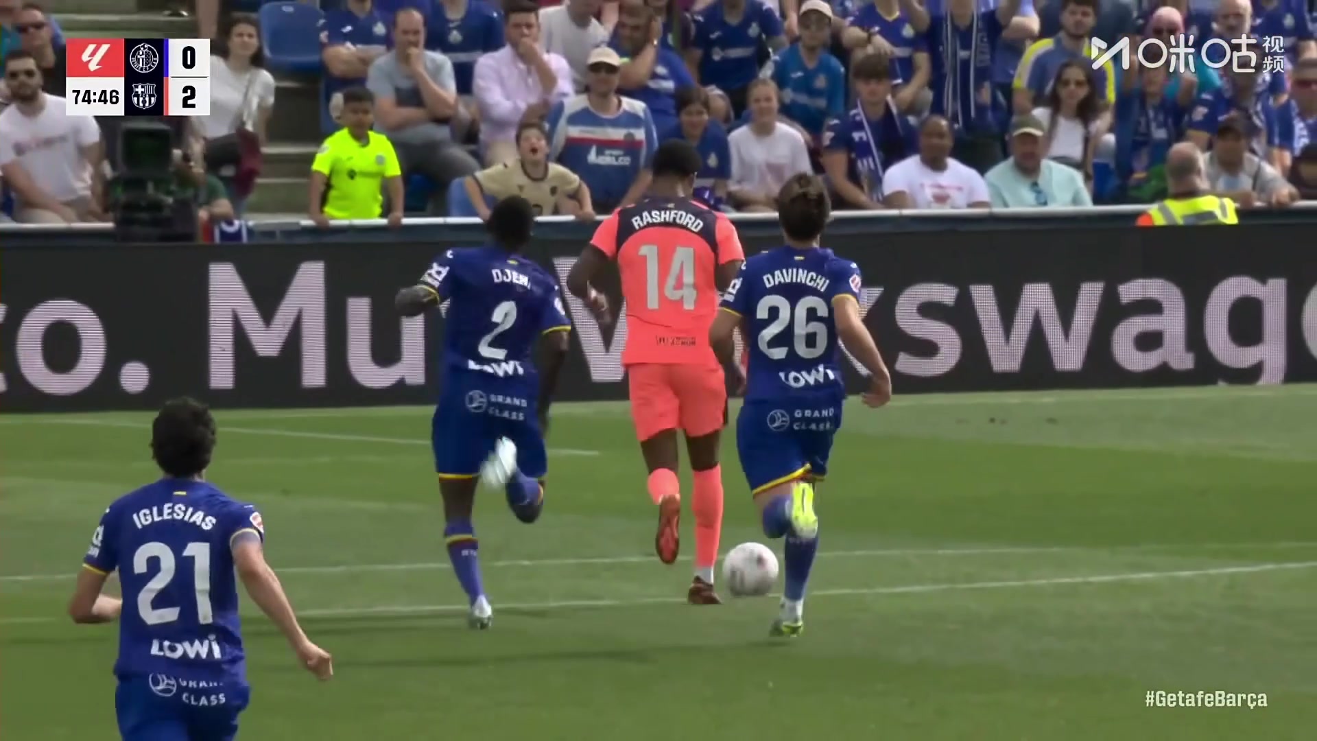 这球可以!莱万长传发动反击,拉什福德长途奔袭单刀破门!
